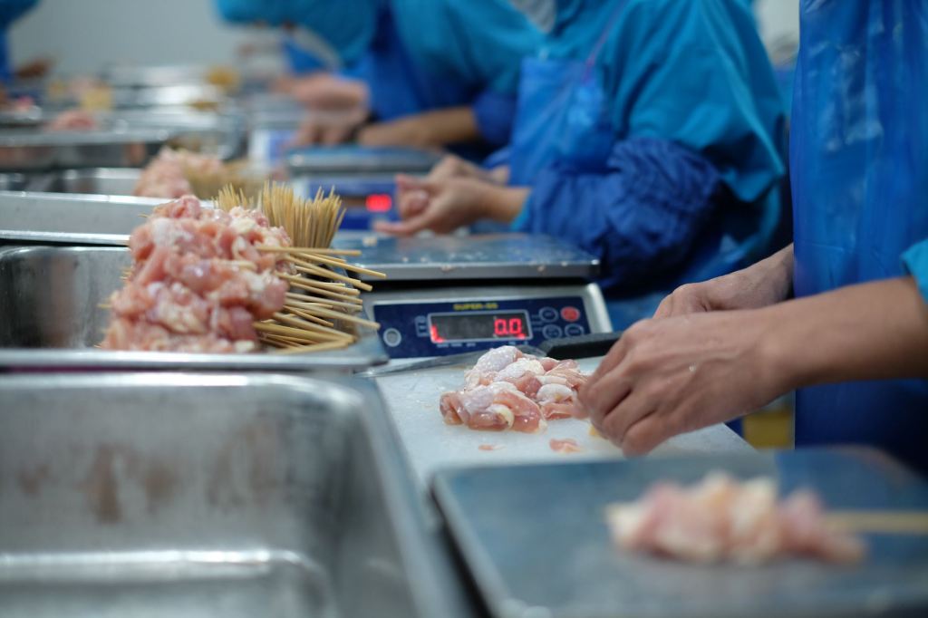 For yakitori products, we check every skewer so that both weight and appearance meet customers’ specs.