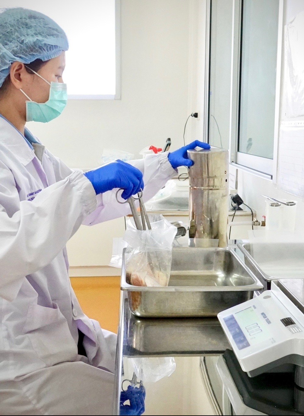 We inspect every boneless leg meat at the end of each production line by hand and X-ray machines to avoid bone contamination.